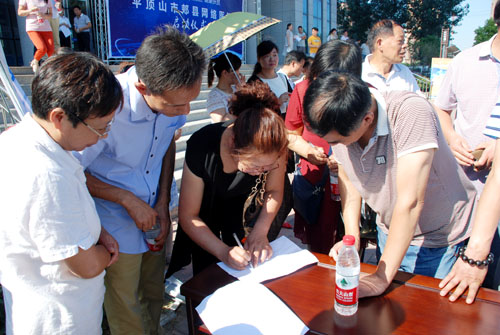 9月8日,来自郏县各个乡镇的乡村医生在设备领取表上签字。