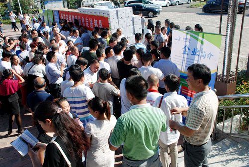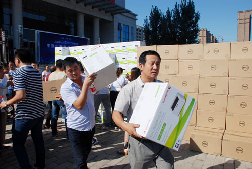 9月8日,来自郏县各个乡镇的乡村医生在领取设备。