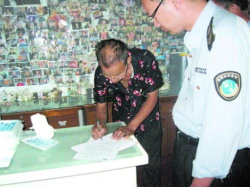 近日,林州市一名非法行医者正在卫生监督员出具的停业通知书上签字。林州市卫生监督所联合公安机关,取缔了一家非法口腔诊所。卫生监督员按照法律程序对该口腔诊所内的反光灯、牙椅、消毒柜、换药车及药品进行了证据先行登记保存,同时对当事人下达了停业通知书,要求其在取得医疗机构执业许可证前不得开展诊疗活动。