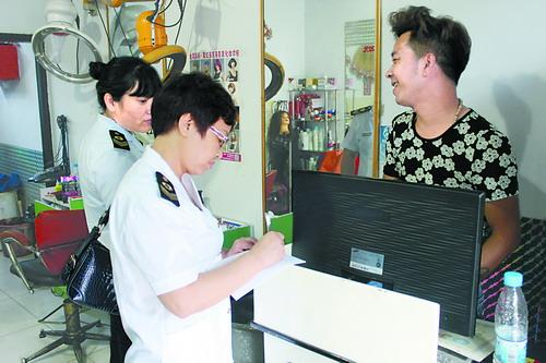 近日,三门峡市湖滨区卫生执法监督所卫生监督员在辖区某理发店开展检查。三门峡市湖滨区卫生执法监督所对辖区公共场所“五小”(小食品经营及加工单位、小理发美容店、小旅店、小浴室、小歌舞厅)行业进行集中整治,对达不到要求的从业单位下达卫生监督意见书,要求其限期整改。侯青峡 曹 晶/摄