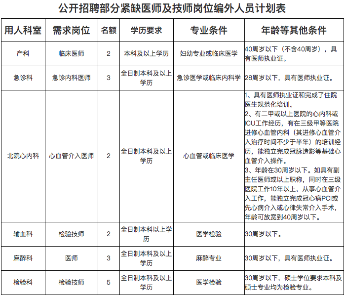 附表2:《公开招聘部分紧缺医师及技师岗位编外人员计划表》