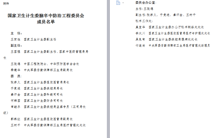 【公告】国家卫生计生委脑卒中防治工程委员会成员调整通知