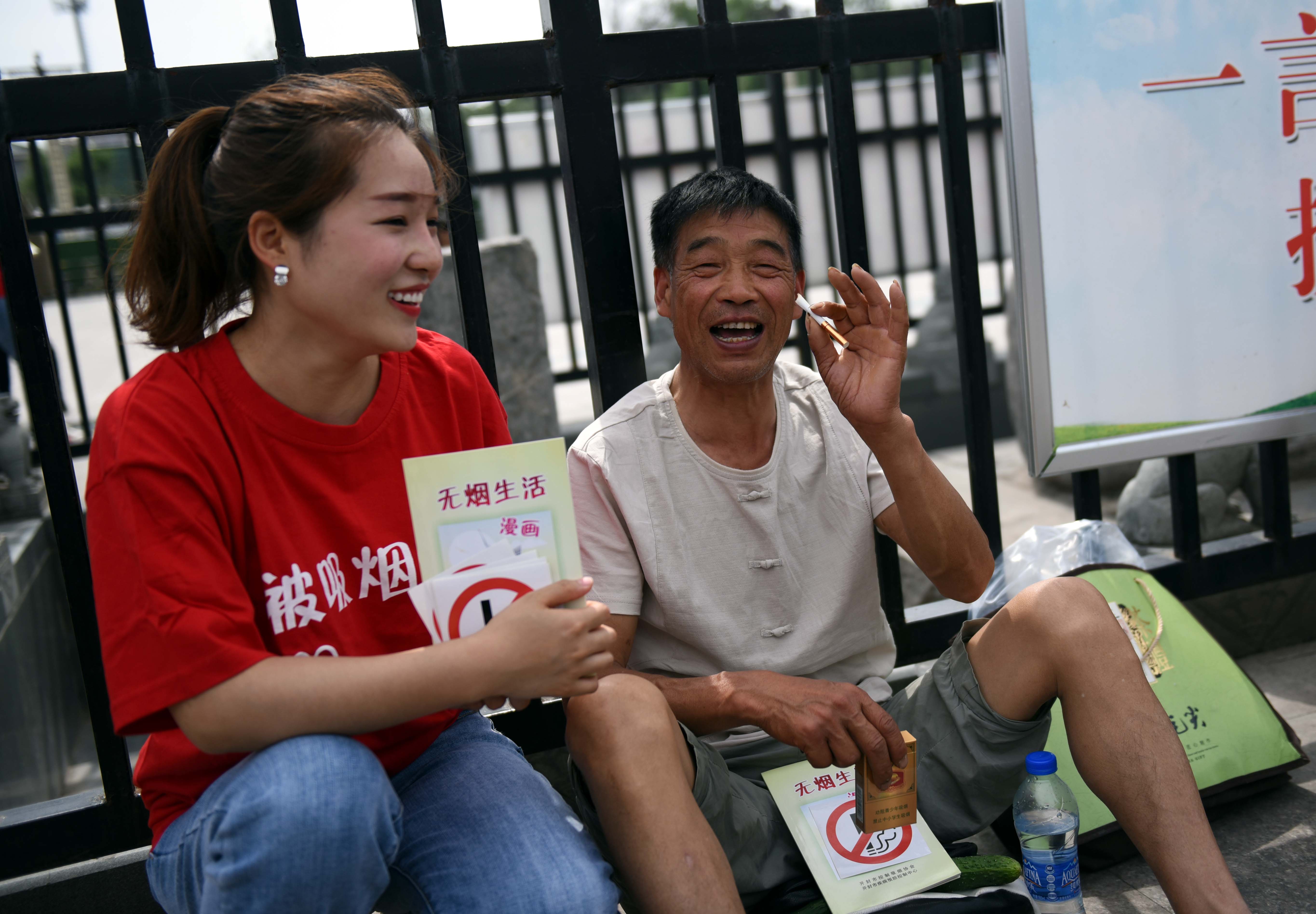 5月14日,开封市旅游景区突然出现多名身着印有“被吸烟 我不干”红色体恤的年轻人,他们对在景区内抽烟的游客进行劝阻。这是一群自发组成的劝阻抽烟自愿者团队,他们将不定期“闪现”在不同的公共场所,对抽烟者进行劝阻。