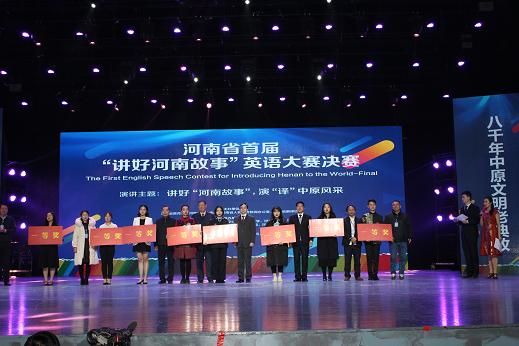 本报讯 (记者王明杰 通讯员卫永强 黄 欢)记者昨天从漯河市了解到,为激励全省大学生用英语讲好河南故事,传播好河南声音,促进中外人文交流,推动中原更加出彩。1月16日,由河南省教育厅、河南省人民政府外事侨务办公室、河南省人民政府新闻办公室、河南省翻译协会联合举办的河南省首届大学生“讲好河南故事”英语大赛(以下简称“大赛”)在河南电视台圆满落下帷幕。