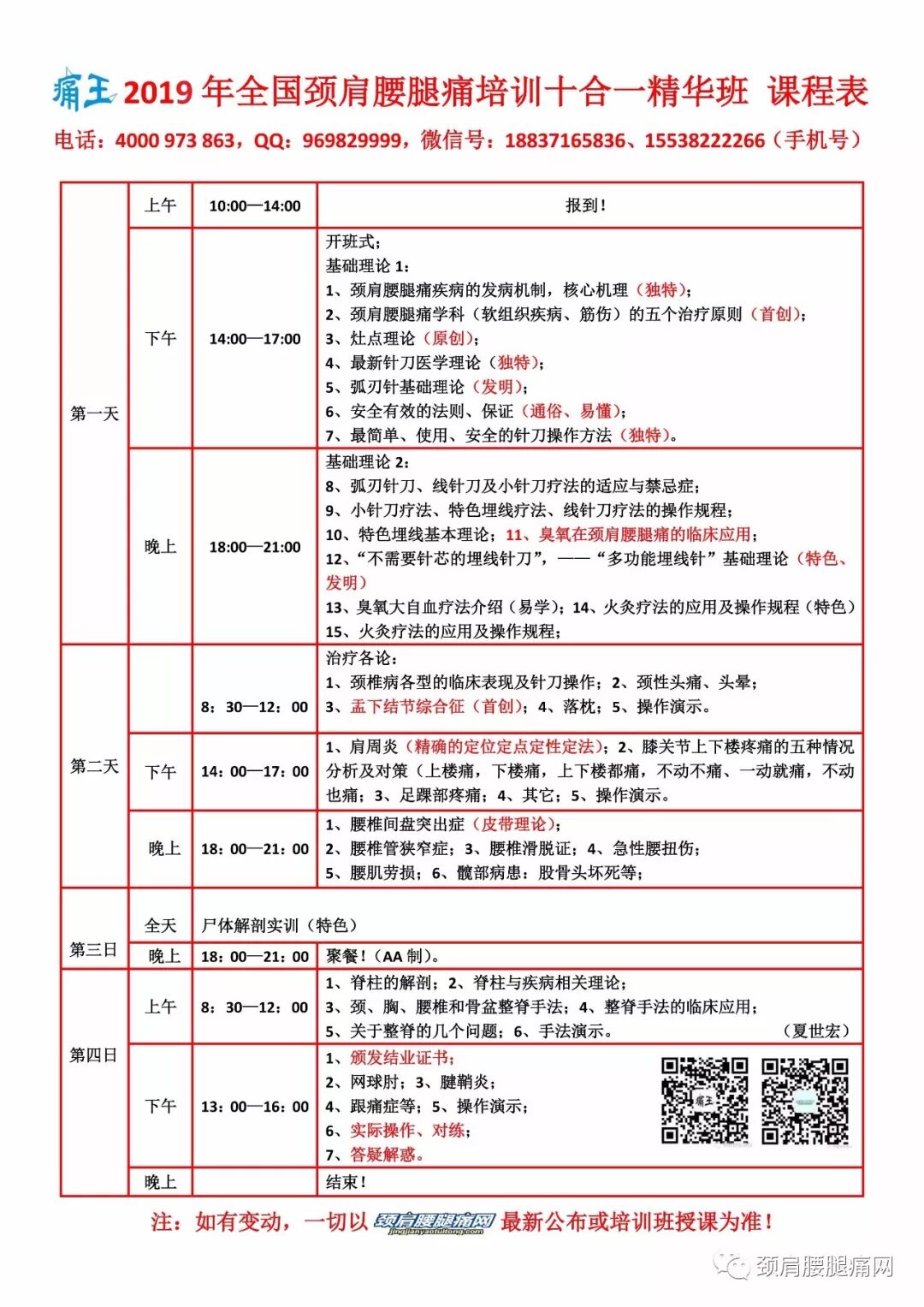 2019年,痛王全国颈肩腰腿痛技术培训十合一精华班,全新升级!