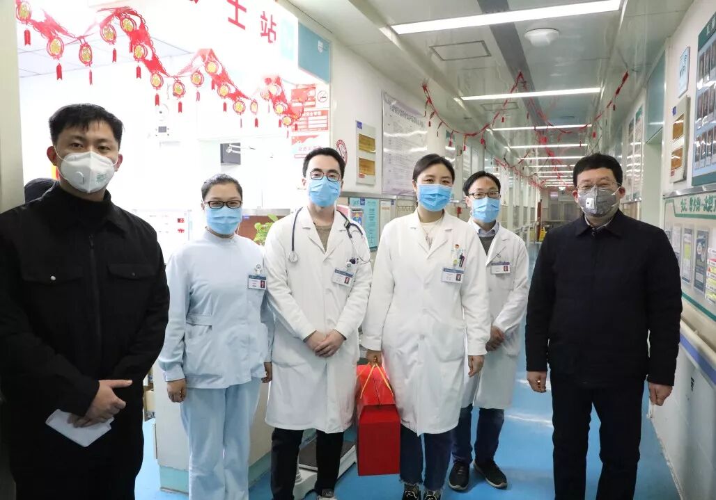 除夕当天,市常务副市长邓英文,副市长刘军杰,市卫健委主任白利亚及我院领导班子到一线医务工作者家中送去新春的问候,感谢他们对医务防控工作的支持与理解,并对拥有这样的医护家属表示赞扬。