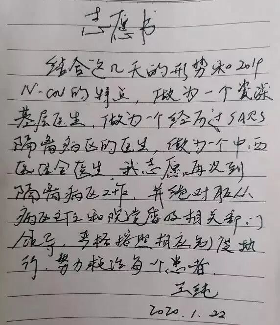不仅是脑病中心,该院急诊重症支部、呼吸与危重症科等科室医护人员也纷纷在请战书上签名。“刚一发生疫情,我们就萌生了这个想法。”汝州市第一人民医院脑病中心主任王海建说,“得知新型冠状病毒感染的肺炎进一步蔓延,我们就赶紧写上这份请战书。”此举立刻得到了该院全体医护人员的积极响应和支持,大家纷纷踊跃报名,一些正休息在家的医护人员,第一时间主动赶到医院在请战书上签名。