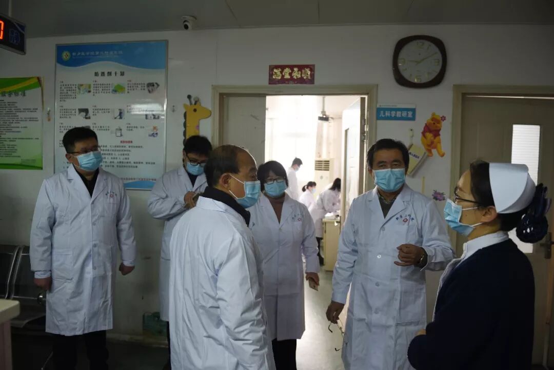 1月28日(农历正月初四),新乡医学院党委副书记、校长任文杰,党委委员、副校长刘国庚带领相关部门负责同志来我院疫情防控一线实地检查指导工作,看望慰问奋战在一线的医护人员。