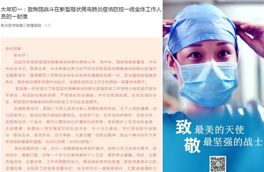 医院发出《致我院战斗在疫情防控一线全体工作人员的一封信》,向一线工作人员致敬、致谢。