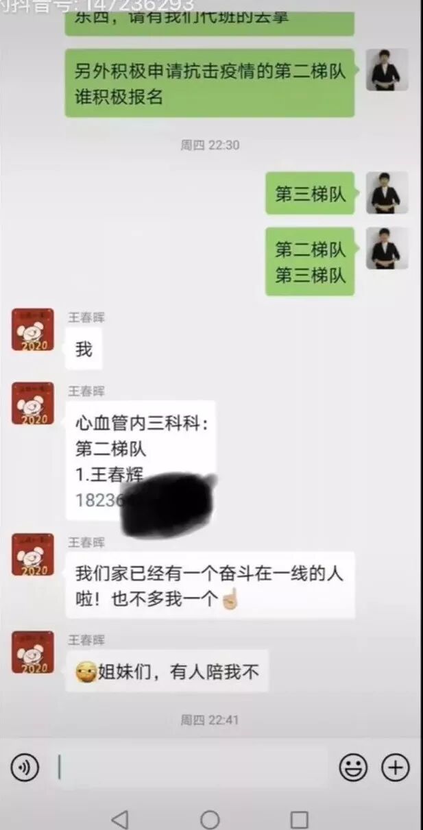 1月26号的下午,我和其他支援一线的同事,一行5人一起来到了呼吸重症医学科,护士长宋小秀老师为我们再次培训了防护知识,接着我们很快熟悉了环境,分好班次,换上防护服和隔离衣开始了我们新的挑战。因为穿防护服和隔离衣需要时间,所以我提前将近一个小时就要开始准备,穿好工作衣、防护服、隔离衣,戴好口罩、帽子、护目镜后,已是一身汗,觉得闷的连呼吸都很困难,同事给我说:“你现在出去,估计你妈都不认识你,我给你拍张照片吧?让你妈看看”。此刻,我沉默了!父母和哥嫂远在郑州并不知情。我无法面对他们,我怕已经憋回去的泪水再次涌出。进入隔离病房交接班后,就开始了忙碌的工作,穿戴着防护服和橡胶手套后所有的操作都显得有点困难,加上护目镜上易起雾,看东西都有点吃力,所以,每一项操作都要格外认真、小心、细致,除了病房常见的输液、雾化等治疗外,因肺炎的病人都有恶心、呕吐、腹泻等症状,一边要为病人清理排泄物的同时一边又要严格监测病人生命体征,及时发现病人有无脱水等现象。一位女病人在我为她监测生命体征时,突然握着我的手对我说:“我想知道你的名字?”看到我不解的眼神,她接着说道:“我恶心又拉肚子,一趟一趟的你都没闲着,可却还是很关心我的感受,一遍一遍不厌其烦的为我量体温、血压,你这会儿肯定一身汗。真的很感谢你!我不是本地人,家是武汉的,你们给了我信心。”那一刻,一股暖流涌上心头!其实,在这种工作环境中,闷的呼吸都难,和病人的沟通,我做的远远不及以前在科室的十分之一,这里更多的是无声的陪伴和指导。病人的理解和感谢是对我工作的认可,是督促我前进的动力!