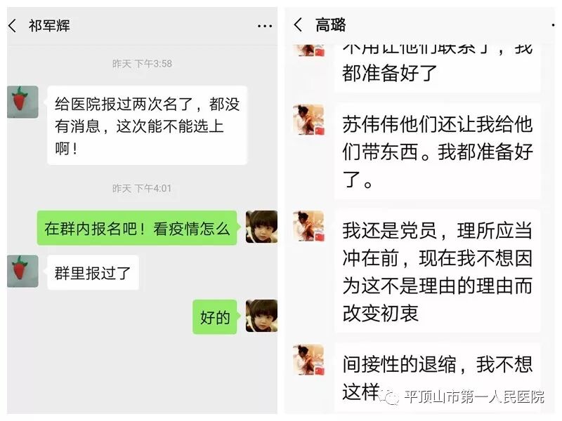 “给医院都报过两次名了,都没有消息,这次能不能选上啊!”党员报名群里,彩超室副主任祁军辉不止一次要求党组织批准加入救治医疗队。