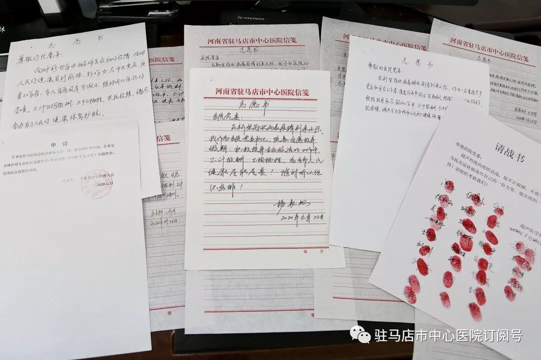 1月22日杨长虹同志向医院党委递交志愿书:“在新型冠状病毒到来之际,我作为医院党委书记、院长,自愿放弃假期,积极投身重症救治的工作中,不计报酬、不怕牺牲,为全市人民的健康尽职尽责!”党委成员和医院领导班子成员也纷纷向医院党委请战,随时听从组织安排。随后“请战书”在医院各微信群不胫而走,引起了全院党员干部职工的强烈共鸣。