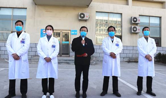 冯文学强调:目前我县疫情防控工作形势总体向好,但随着复工复产带来的人员流动等因素,大家仍要从思想上、工作上做好万全准备,千万不可麻痹大意。勉励第二梯队的队员们一定要听党指挥,服从安排,敢于担当,不负重托,为夺取抗疫阻击战全面胜利贡献自己的力量!同时要求大家在做好医疗救治的同时,一定要加强自我防护。