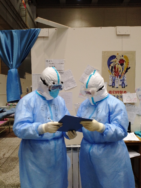 江汉方舱医院是武汉成立最早的方舱医院,也是16家方舱医院中收治病人最多的一家医院,拥有1600张床位,王金墙所在的医疗队负责其中360个床位。方舱医院内,大部分患者心态都比较好,但也会有部分人出现情绪波动的时候。