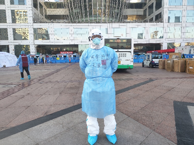 在方舱医院有限的医疗条件下,王金墙立即展开抢救,并间断用血压计、指脉氧及触诊检测患者的生命体征,同时紧急联系定点医院进行转院工作。在坚守病床近两个小时后,终于等来了转院的救护车。女患者是自行走到救护车旁,临上车时,她突然转身,向王金墙竖起了大拇指:“谢谢你,河南医生!”