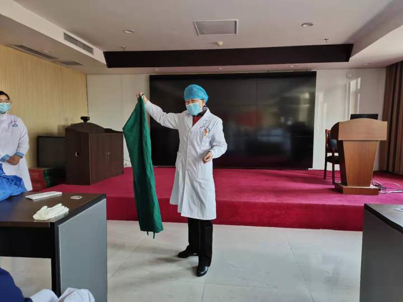 为了确保医务人员安全,当务之急是宣传普及新冠肺炎防控知识,在主管副院长师玉海、朱爱霞带领下,我科室协同多部门在院内对所有医务人员进行新冠肺炎诊疗知识、防控措施、护理要点及防控技能等方面的培训,让防治新冠肺炎一线科室人员达到正确使用防护用品、保证不被感染的目的。在本院开展这样的培训中,培训前后达4400余人次,同时,我们又积极参与对本区内其他医疗机构的培训工作,为全区疫情防控工作做出了应有的贡献。凡有新的诊疗防控方案出台后,科室第一时间进行学习,以便更好服务于临床。