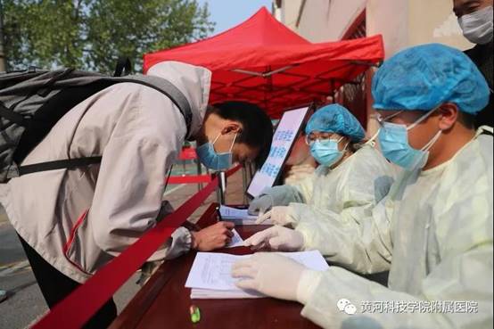 本报讯(记者 李志刚 通讯员 李春霞)4月7日,黄河科技学院附属中学高三学生陆续复学。为确保学生安全返校入学,黄河科技学院附属医院积极行动,分党委副书记李克栋书记带领医护人员和感控人员,现场指导疫情防控。