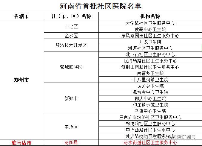 (图二、河南省首批社区医院名单)