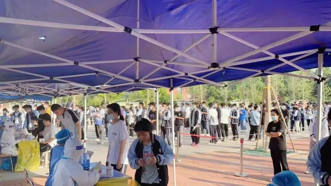 学生们整齐地在等候区、采集区、缓冲区、临时隔离区等排除待采,秩序井然。
