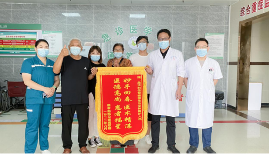 2022-9-28 来源:医药卫生网 - 医药卫生报医药卫生网讯(记者 张治平 通讯员 刘志杰 时添雅 张宁)近日,64岁的赵大爷携妻儿来到通许第一医院急诊科,双手为急诊科医生岳奇峰和科室医护人员送上一面鲜红的“锦旗”。因为在不久前,赵大爷在通许第一医院急诊科经历了一场“与死神的较量”,正是岳奇峰医生和急诊科的医护拼尽全力,才将他从“死神”的手里抢了回来。回想起当天的经过,赵大爷仍然“心有余悸”。