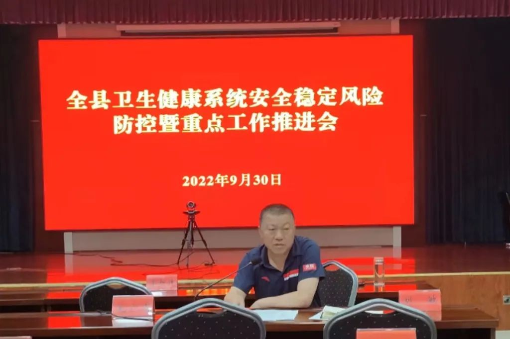 中牟县卫生健康委党组书记、主任姚国森在讲话中要求:一要认清形势,提高站位,做好当前安全稳定风险防控工作。二要针对问题,突出重点,着力抓好关键环节。要着力抓好疫情防控、信访稳定、安全生产、监督执法、意识形态和医保基金安全等工作,精准施策,及早发现并及时解决问题,确保稳定。三要加强领导,压实责任,坚决维护全系统稳定。要严格落实单位一把手责任,落实制度,确保各项工作落到实处。四要统筹兼顾,全面发展,确保全年工作任务圆满完成。在下步工作中,要做好喜迎二十大和二十大精神的宣传工作,要做好医共体建设、中医药、基层卫生、健康中牟、“一老一小”服务能力建设等重点工作,全面完成全年卫生健康工作任务,以优异的成绩迎接党的二十大胜利召开。