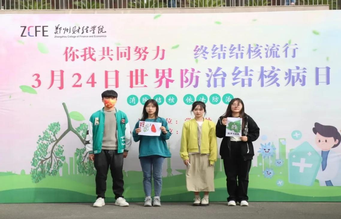 早在今年3月初,郑州财经学院就根据郑州市结核病百千万志愿者传播活动要求,通过自主报名、院级选拔等环节,招募组成了1700余名的大学生志愿者团队,积极号召大学生志愿者以“世界防治结核病日”为宣传主题,在校园内多个地点进行打卡。倡议得到了他们的热烈响应,大家踊跃以个人或团队的身份,通过照片或视频的形式,以自己独有的方式宣传结核病科普知识。3月20日,郑州财经学院将围绕宣传主题的优秀作品推送至“郑财学工”微信公众号,引起热烈反响,全校师生纷纷投票,营造了师生同力防治传染病的良好氛围。
