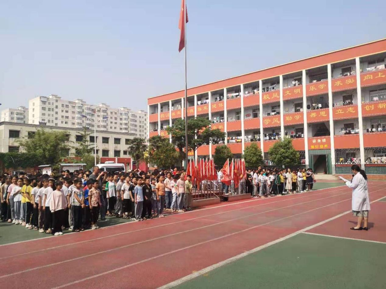 “祖国的花朵们,大家上午好!咱们大家都知道‘身体是本钱’,而合理饮食、均衡营养才是保障身体健康的重要因素。下面,咱们从‘全国学生营养日’的由来、怎样培养良好的饮食习惯等方面讲解……”社旗县疾控中心学卫科副科长王英梅和蔼可亲的开门曲,博得师生们阵阵掌声。