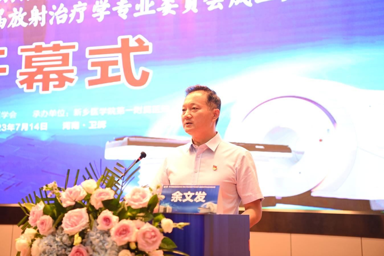 本报讯(通讯员杨智华 刘娓希 郭升 夏淼)2023年7月14日上午,由新乡市医学会主办,新乡医学院第一附属医院承办的第四代螺旋断层放射治疗系统(TOMO)开机仪式暨新乡市医学会第二届放射治疗学专业委员会学术会议在9号楼二楼会议室举行。山东省肿瘤医院院长、中国工程院院士于金明,新乡医学院党委书记、校长任文杰,新乡市卫生健康委员会主任王培山,新乡市医学会秘书长王悦,解放军总医院马林教授,郑州大学第一附属医院樊锐太教授,河南省肿瘤医院葛红教授,解放军总医院王运来教授,复旦大学附属肿瘤医院副研究员龚敬等领导、嘉宾及医院在院领导、相关科室负责人近300人出席会议。仪式由新乡医学院第一附属医院党委书记宋元明主持。