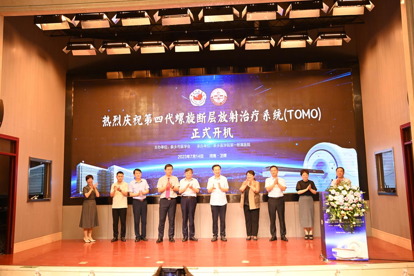 领导嘉宾共同为医院新乡医学院第一附属医院第四代螺旋断层放射治疗系统(TOMO)开机,见证这一历史性的时刻。