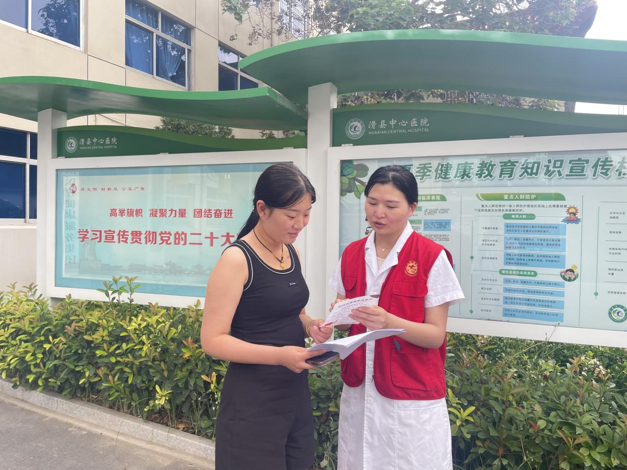 2023-7-22 来源:医药卫生网 - 医药卫生报 浏览:次 【查看证书】医药卫生网讯(记者张治平 通讯员刘权 李水淼)7月21日上午,在滑县中心医院门诊楼前,该院健康服务中心主任王冰正为前来就诊的患者开展健康知识科普,并讲解“信易医”服务,让更多居民了解这项惠民政策。