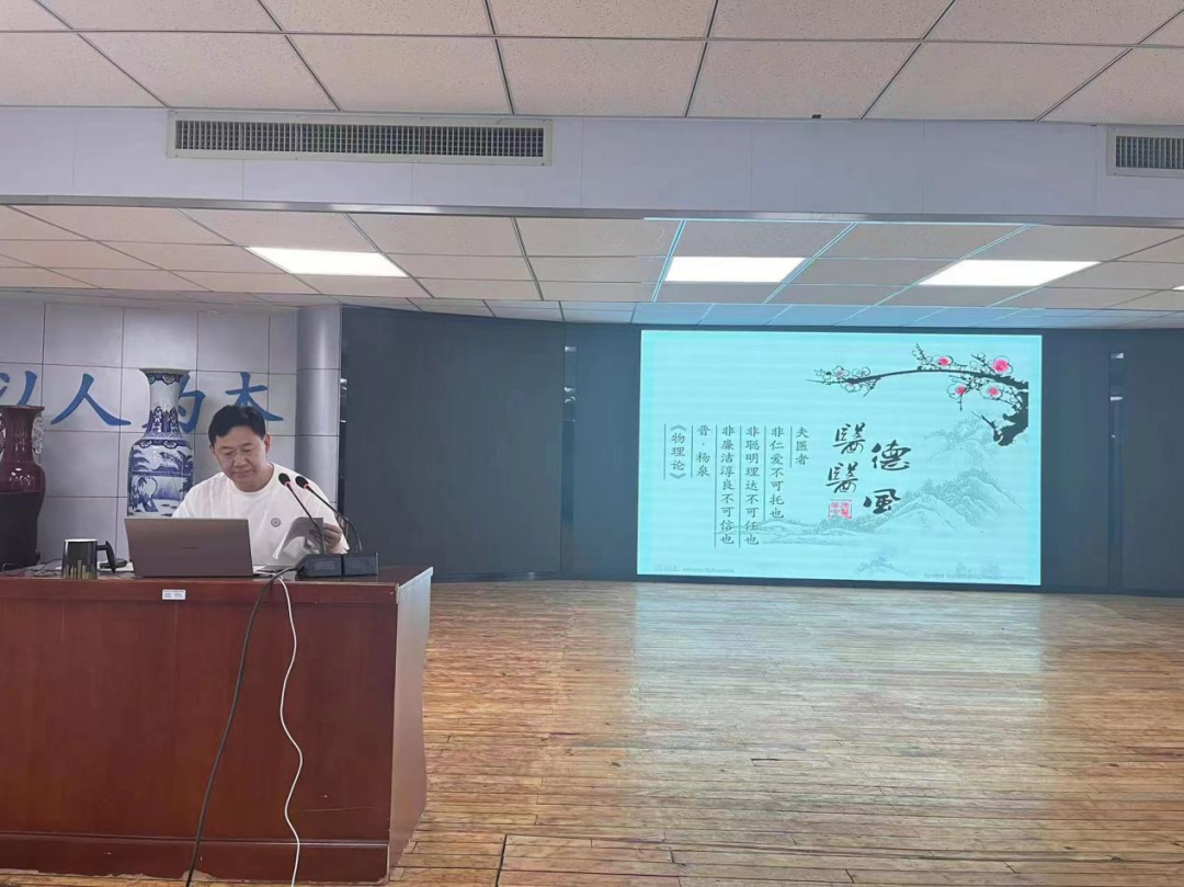 纪委监察室主任杨竞就目前医院在医患关系面临的现状,以及影响医患关系的因素进行了分析和讲解,详细介绍了创建清廉医院、清廉科室、清廉个人等示范点建设,要求大家廉洁行医,全心全意服务患者。