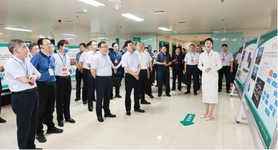 2023-7-25 来源:医药卫生网 - 医药卫生报 浏览:次 【查看证书】医药卫生网讯(记者常俊伟 通讯员穆培霞 李炳 王鹏宇)为深入开展学习贯彻习近平新时代中国特色社会主义思想主题教育,确保以“重实践、建新功,推动卫生健康事业高质量发展”为主题教育的工作取得扎实成效。7月21日,河南省卫健委二级巡视员田常俊一行30人组成的观摩组到新乡市中心医院,对医院“提升医疗服务十大举措”“便民就医少跑腿七大举措”的落实情况及医院高质量发展成效进行现场观摩,市政府秘书长马治中、市卫健委副主任陈银亭、新乡市中心医院领导车振勇、谢玮、李树斌,以及相关职能科室负责人陪同。