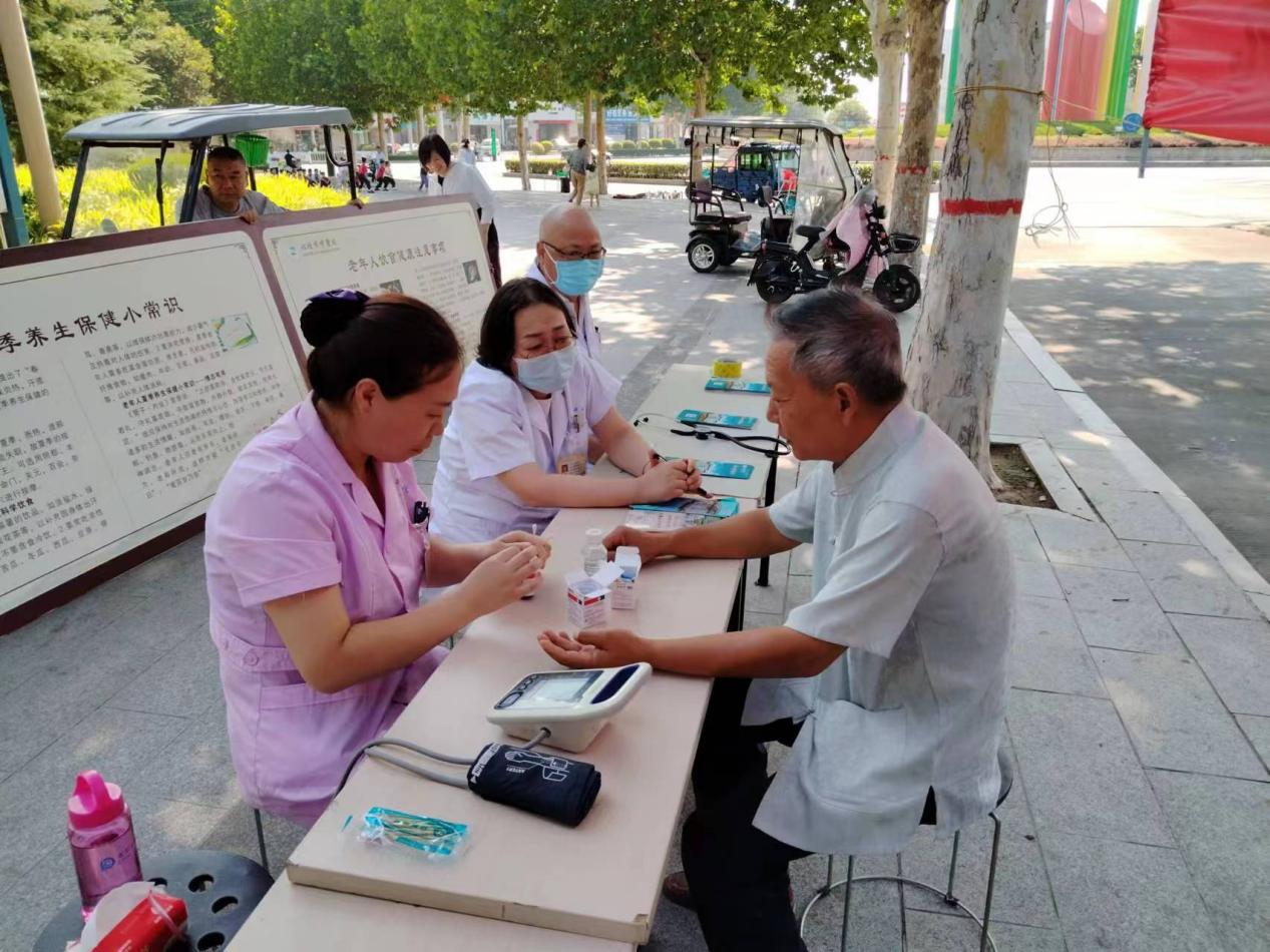 7月26日,沁阳市卫健委、教体局组织市人民医院、市中医院、市妇幼保健院、老年运动协会、基层医疗机构,在怀府广场、联盟广场、朱载堉广场,开展以“科学健身助力老年健康”为主题的老年健康宣传周活动。活动现场,工作人员为群众进行了健康义诊和科普宣传,并进行了太极拳展示。(王正勋 侯林峰 程芳)