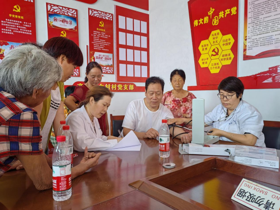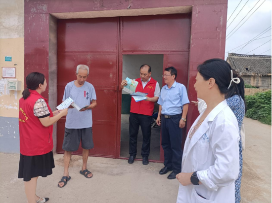 7月27日,平顶山市疾控中心来到鲁山县辛集乡白村开展义诊暨健康科普进乡村宣传活动,为村民免费测量血压、血糖,并进行健康科普知识宣传。