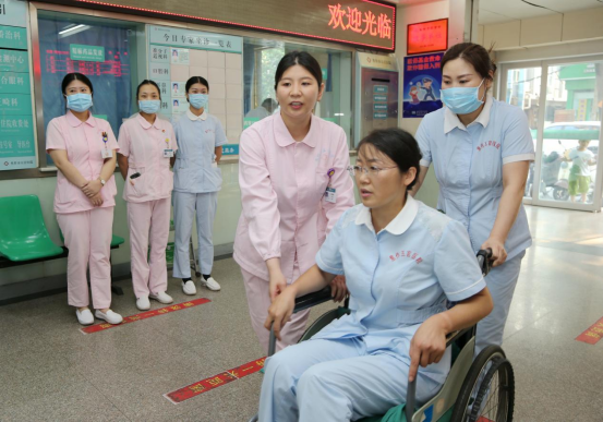 7月27日,焦作市五官医院护理人员正在服务行动不便“患者”。为进一步提升护理人员的护理水平和服务质量,焦作市五官医院护理部对护理人员进行护理礼仪培训,培训有导医服务、服务行动不便患者及护理人员站、坐、走等方面内容。王正勋 侯林峰 王中贺/摄