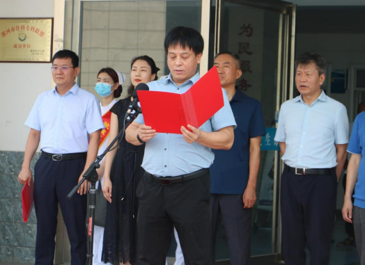 7月28日上午,揭牌仪式在裴城镇卫生院举行。漯河市政协副主席、农工党市委会主委李耀军,市委统战部一级调研员王民才,农工党市委会副主委闫丙川,郾城区政协副主席滕宝成,区委统战部常务副部长闫志红,区卫健委党组书记、主任王东升出席仪式。农工党市委会医疗专家代表、裴城镇卫生院领导班子、职工代表、乡村医生代表参加仪式。裴城镇镇长郑少华主持揭牌仪式。