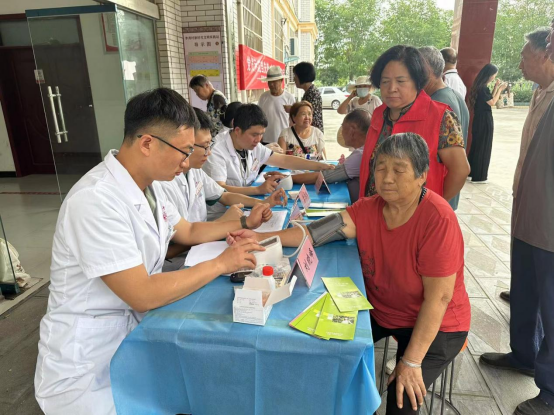 这些具有内科、心血管、呼吸、心脏重症及血液肿瘤等学科丰富临床经验的党员志愿者认真、细致地为社区群众诊断、回答群众咨询、讲解预防保健知识,免费给村民测量血压血糖及心电图、彩超检查,开展慢性病统计工作,当天上午服务群众100余人。