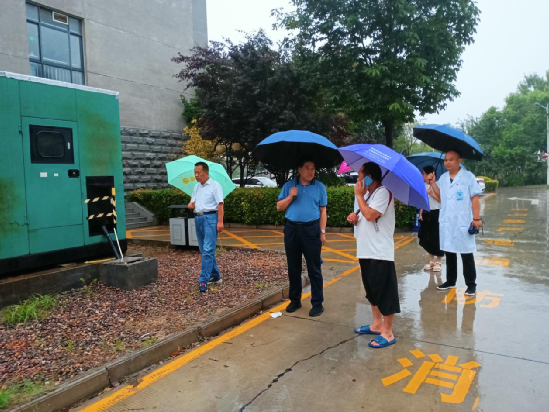 当天下午17时,李全国立即召集相关科室负责人,一行人冒雨奔赴惠民病区、临床科室、医院食堂、配电室、门诊楼、病房楼各个出口,各重要隐患位置实地查看,排查隐患,安排部署防汛工作,确保防汛工作万无一失。