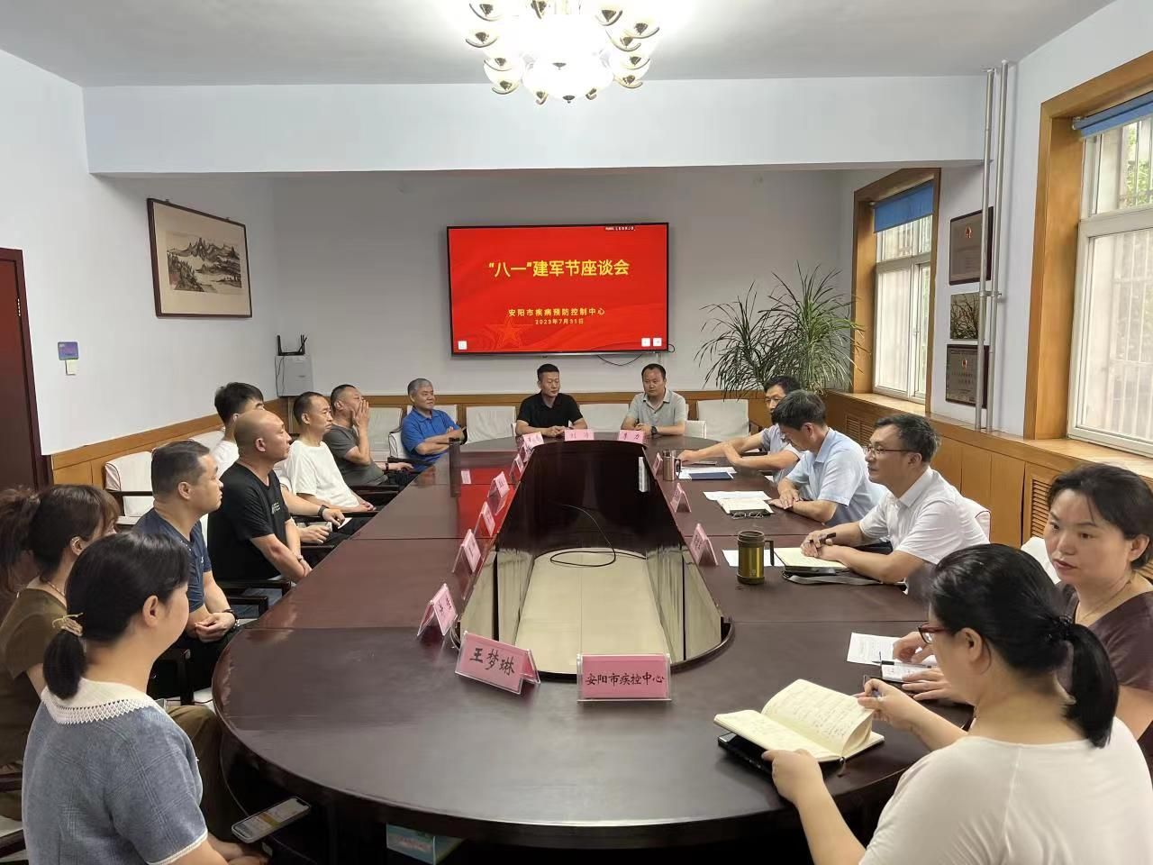 2023-7-31 来源:医药卫生网 - 医药卫生报 浏览:次 【查看证书】医药卫生网讯(贾晓晨 王雪君 郭丽)为弘扬拥军爱民的优良传统,7月31日上午,安阳市疾控中心召开了八一建军节座谈会,党委书记、主任李永红,党委委员、副主任职建军,党委委员、纪委书记贺海防与中心在职复转军人欢聚一堂,畅谈革命理想,共话中心发展,同庆建军96周年。