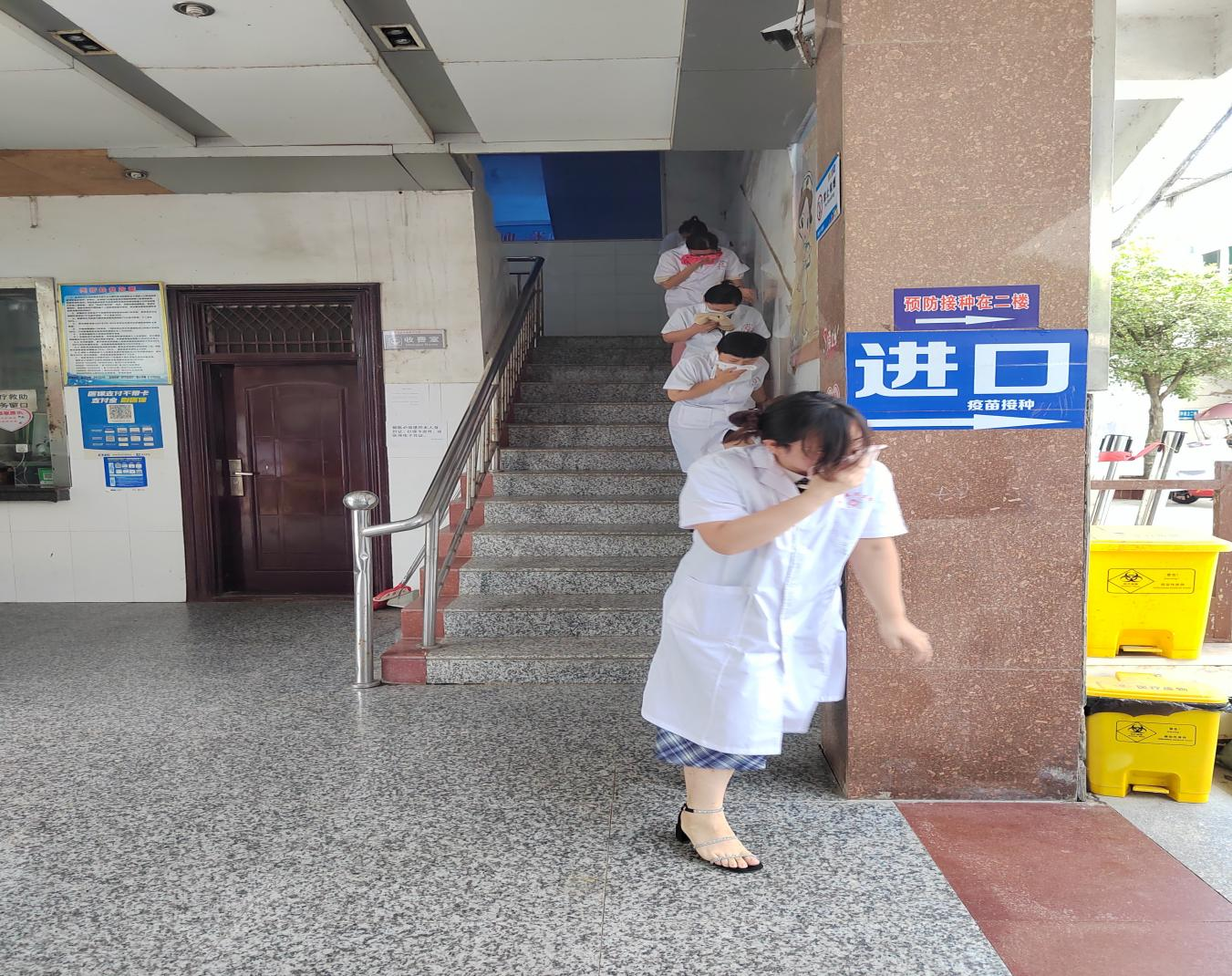 上午10时,随着防火“警报”声骤然响起,罗山县卫健委机关全体干部职工进入紧急疏散状态;同志们以每层楼层为单位,在各层“楼长”的指挥下,手捂口鼻、紧靠右侧、低头弯腰沿安全出口指示方向,迅速“逃生”。演练现场严肃认真、秩序井然,所有同志都安全有序疏散到委机关办公楼前大院安全地带。