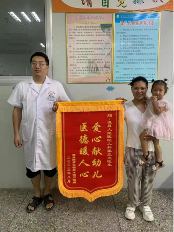“医生服务特别好,百问不厌,像家人一样贴心!”8月5日,在温县人民医院儿科二病区,小患者的外公、妈妈,手捧锦旗,分别赠送给该科主任张利娟和医生张亚光,发自内心地感谢他们仁医仁术,真诚护佑自家宝宝。