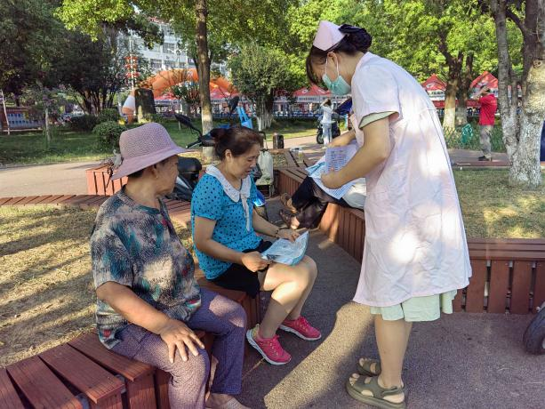 8月19日早7时,固始县妇幼保健院后勤党支部书记刘勇带领眼科专家薛红和内科、心内科医师及健康教育科同志携手张老埠乡卫生院医护团队来到张老埠乡茶厂村卫生室给当地群众提供健康宣教和常见病、多发病的义诊活动。免费为村民提供诊疗、健康咨询、量血压、测血糖、发放健康教育资料等,专家们耐心地为群众解答众多疾病问题。前来咨询和诊疗的群众100余人,发放健康科普资料约300份。