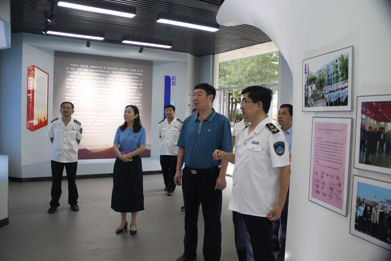 李青山、张根红首先参观了该局蓝盾传习所、党建大厅和卫生监督文化建设。随后,在四楼会议室召开了工作汇报会。闫现营从该局基本情况、主要工作开展情况、存在问题及下一步打算等方面汇报了濮阳市工作情况。