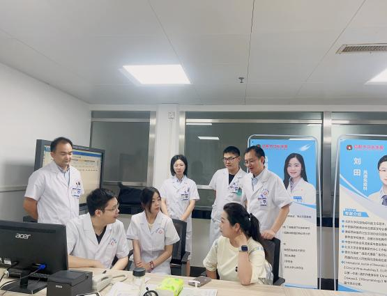 刘田为科室住院的一位系统性硬化症合并系统性红斑狼疮患者进行了疑难病例查房,该患者同时合并有急性心肌梗死、多浆膜腔积液、间质性肺炎、肝硬化;刘田详细询问了病史,仔细进行了查体,深入浅出地分析病情,给后续治疗指明了方向,使患者重新树立了战胜病魔的信心。