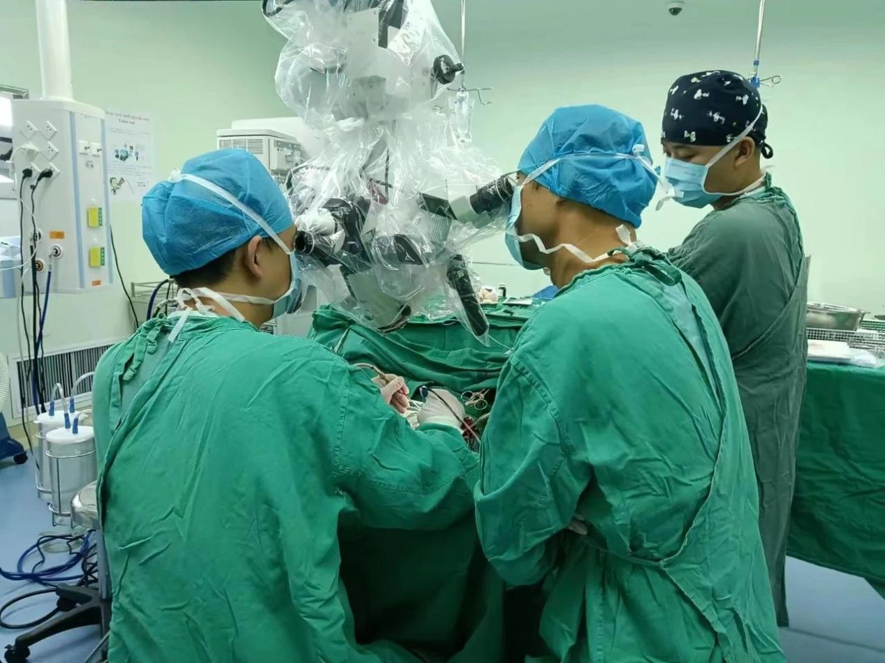 在患者及其家属的充分信任下,经多家上级医院专家会诊,周玉璞带领团队制定周密手术预案,于8月10日为患者行显微镜下“左侧颅内巨大肿瘤切除术”。