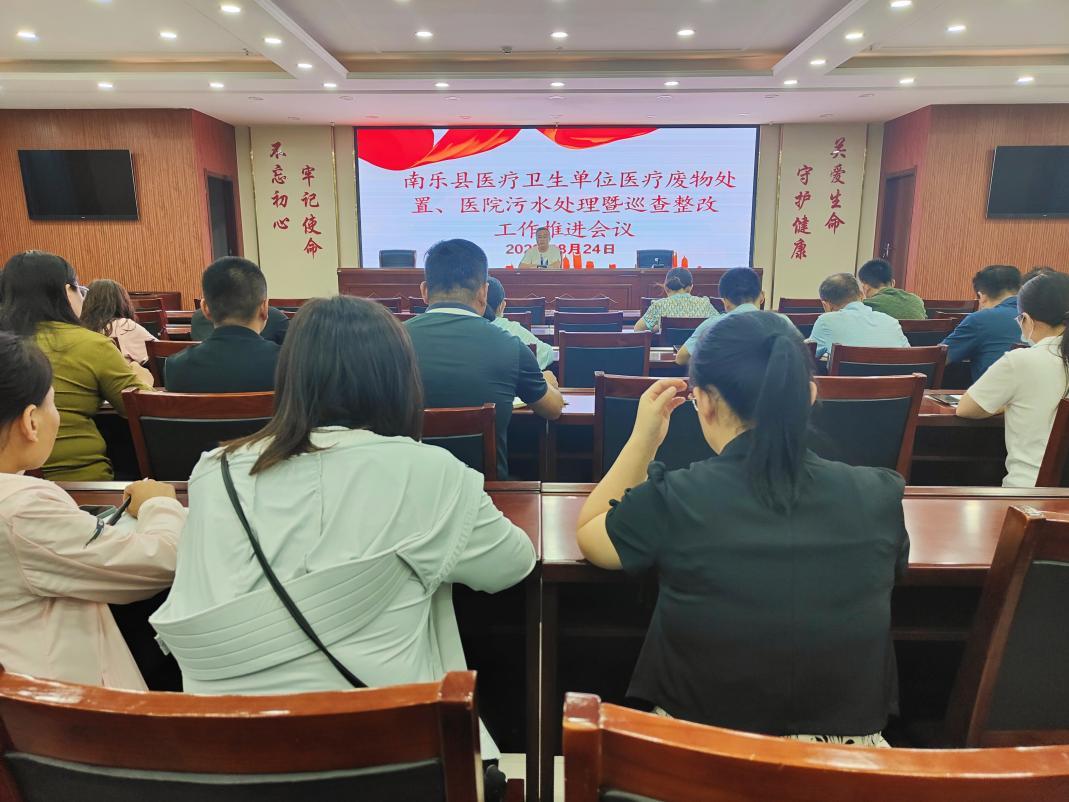 本报讯(记者陈述明 通讯员常路斌)为扎实做好医疗废物处置、医院污水处理工作,切实提升管理水平,根据《传染病防治法》《医疗废物管理条例》等法律法规要求。8月24日下午,南乐县卫健委组织召开南乐县医疗卫生单位医疗废物处置、医院污水处理暨巡查整改工作推进会议。南乐县卫健委副主任、疾控局局长王海成参加会议并讲话。全县各医疗卫生单位分管副职、管理人员,县卫生计生监督所负责人及相关职能监督科室人员共60余人参加会议。