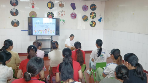 靳燕霞为老师们讲解了儿童意外伤害的预防和急救措施。内容包括幼儿烧烫伤的预防和紧急处理、幼儿意外窒息的预防和紧急处理、高热惊厥、触电等急救措施。靳燕霞的讲解通俗易懂,老师们都听得聚精会神。