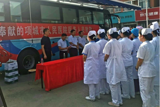 当天的天气炎热,但大家的爱心不减。在周口市中心血站工作人员的指引下,该院献血人员报名登记、体检、化验、登车、采血,现场井然有序。这些献血人员中,有来自临床一线的医生、护士,也有来自行政、后勤部门的工作人员。他们大多是趁着工作间隙匆忙赶来献血的,挥汗如雨的忙碌身影彰显了白衣天使们的爱心和奉献。