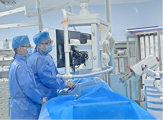 原来,白大娘自2018年起,因反复消化道出血,出现呕血、黑便、大量腹水多次住院,经药物及内镜下止血治疗均效果不佳。近日,白大娘再次出现顽固性腹水伴呕血、黑便、头昏、乏力等症状,入住宝丰县中医院内分泌科治疗,完善相关检查后,诊断为“门静脉高压并食管胃底静脉曲张破裂出血、肝硬化腹水”。予以利水、止血等对症支持治疗,患者血红蛋白还是持续性下降,低至69g/L,提示仍有活动性出血。该院微创介入科主任魏洪滔、医师季书豪对白大娘的病情进行了仔细的评估后,决定为其进行TIPS手术治疗。综合其病情,微创介入科团队为白大娘精心制定了周密的手术方案及应急预案。在完善系列术前准备后,手术顺利开始,穿刺、造影、测压、球囊扩张、支架置入、血管栓塞,整个手术过程一气呵成,在确认门静脉压力下降达到预期后,顺利结束手术。术后白大娘未再出现呕血、便血等症状,腹水状况逐渐缓解,门静脉压力从术前的35.3cmH2O降至25.8cmH2O。经过保肝、抗肝性脑病等治疗后,白大娘各项指标恢复良好,顺利出院。据该院微创介入科主任魏洪滔介绍,TIPS手术是指以微创的方式经颈静脉插管至肝静脉,穿刺肝内门脉,将支架植入后建立肝内门静脉与下腔静脉之间分流的人工通道,同时对曲张的食管胃底静脉进行栓塞,能迅速、持续地降低门静脉压力,从而达到治疗门脉高压及胃食管静脉曲张破裂出血的目的。“TIPS手术被业内誉为‘综合介入手术皇冠上的明珠’,此项技术的成功开展,不仅为肝硬化门脉高压患者打通了‘生命通道’,也标志着我院微创介入技术迈上了新台阶”!魏洪滔说。