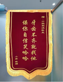 据介绍,患者林女士两年前因为牙齿美观问题来到该院口腔科就诊,接诊的洪全胜不仅擅长口腔正畸专业,而且对待患者态度和蔼可亲。每次林女士复诊,洪全胜都耐心细致地一点点调整治疗方案,叮嘱注意事项,有时遇到患者较多,洪全胜就耐心安抚患者情绪,即使忙得顾不上喝水上厕所,也从来没有怨言,总是轻声细语地和患者沟通病情。两年来,从拔牙到正畸,林女士数次往返医院,但是每次复诊并没有让她感觉繁琐痛苦,反倒是洪全胜贴心的服务、高尚的医德和精湛的医术,让她如沐春风,既放心又满意。于是,林女士特在半月前送来鲜花和锦旗表达谢意。